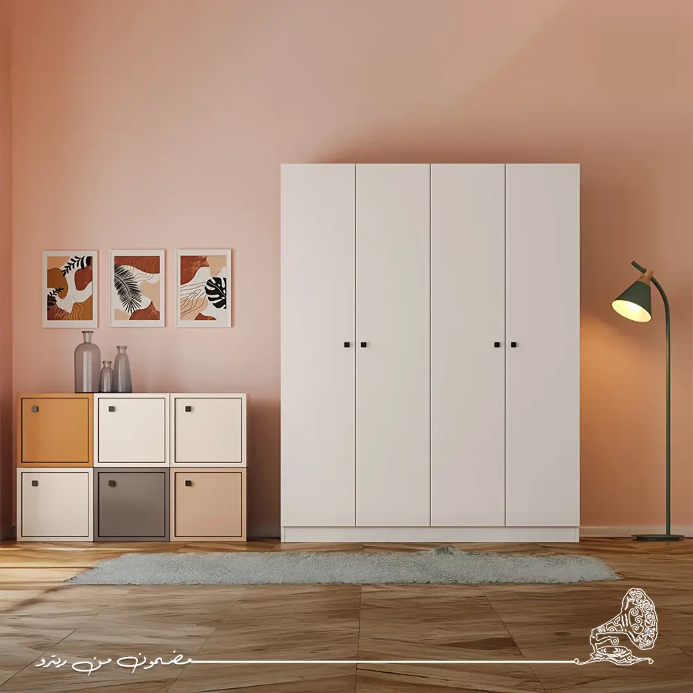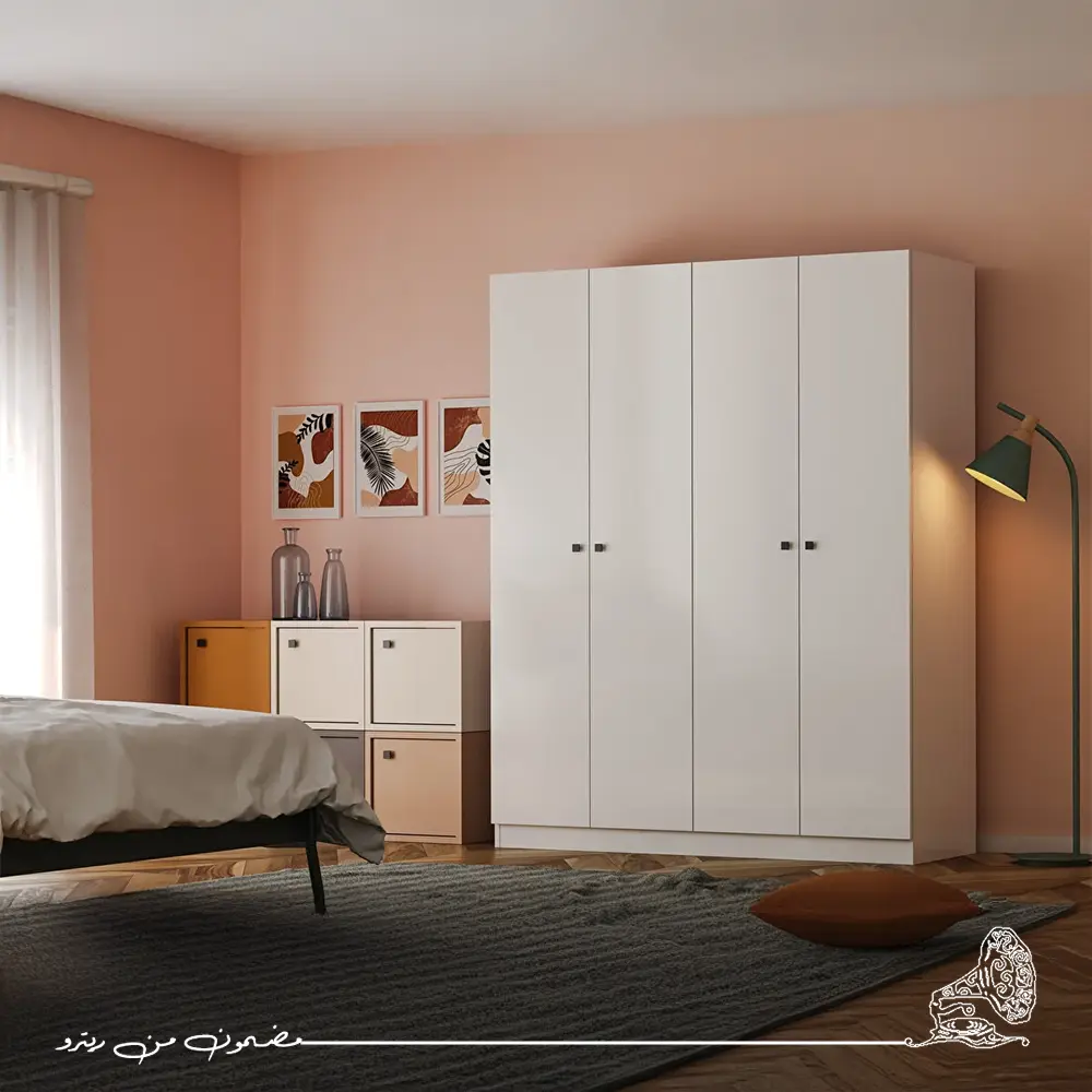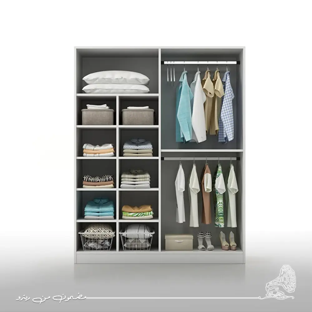 دولاب ملابس مودرن باللون الأبيض يمنح غرفة نومك إحساسًا بالنقاء والبساطة العصرية. تصميمه الذكي يوفر مساحة واسعة لتنظيم الملابس والأغراض بشكل مرتب وسهل الوصول. قطعة عملية وأنيقة تضيف لمسة من الراحة والجمال إلى ديكور منزلك