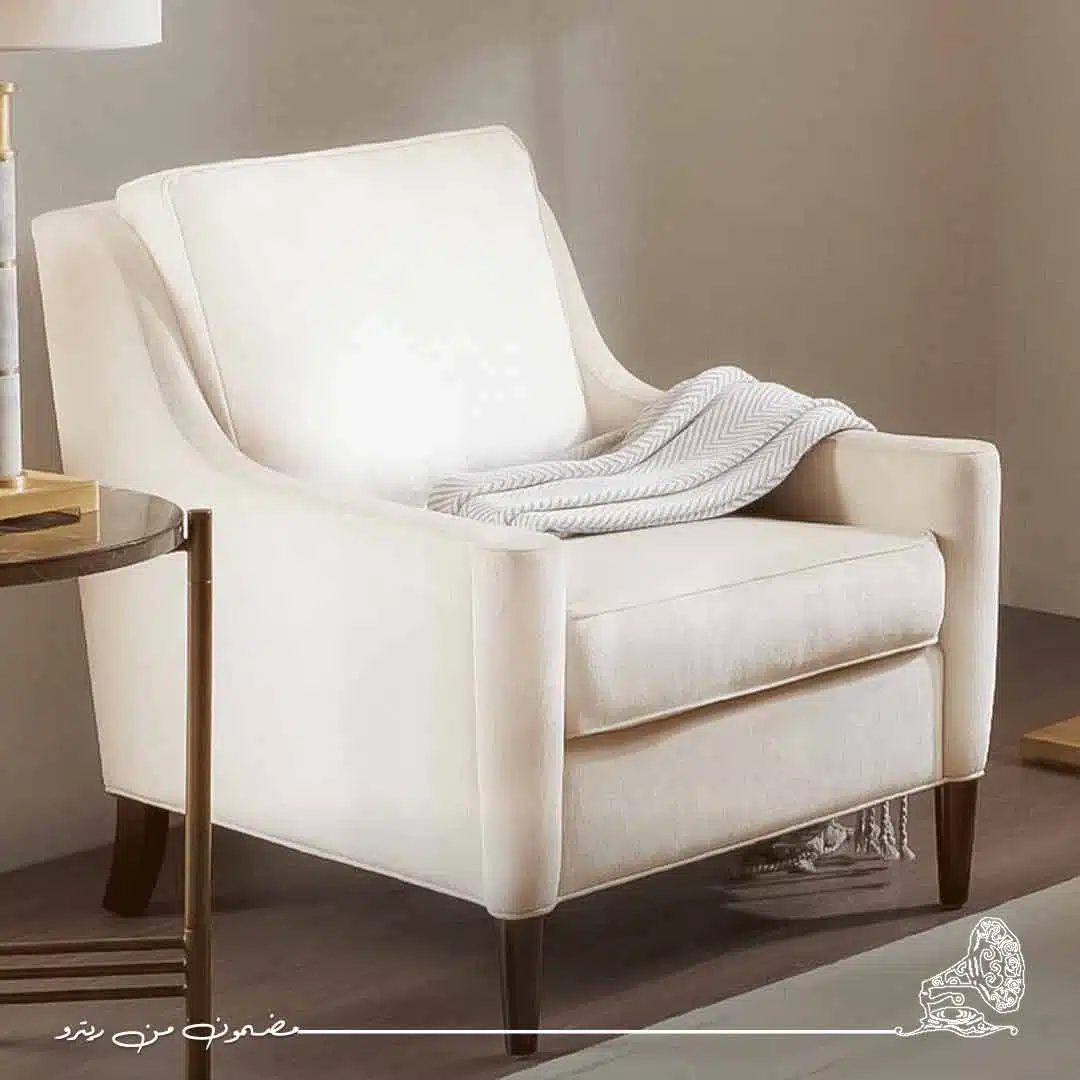 كرسي بذراعين بتصميم أنيق وأبعاد متوازنة توفر راحة مثالية، بلون أوف وايت ناعم يضفي لمسة من النقاء والرقي على الغرفة.يتميز بخطوطه العصرية التي تناسب مختلف أنماط الديكور، مما يجعله خيارًا مريحًا وجماليًا لغرف المعيشة أو الزوايا الهادئة.يُضفي حضورًا مميزًا يعزز من جمالية ودفء المكان بأسلوب بسيط وأنيق