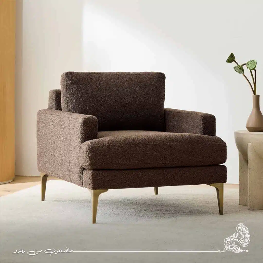 كرسي مودرن بذراعين يتميز بتصميم عصري يجمع بين الراحة والجمال، مما يجعله قطعة مثالية تناسب مختلف أنماط الديكور سواء الكلاسيكي أو الحديث مصنوع من الخشب الطبيعي المعروف بقوته ومتانته، ومغطى بقماش كتان أنيق يمنحه ملمسًا ناعمًا ومظهراً راقياً كما انه ياتي باللون البني لضيف لمسة دافئة وأنيقة تجعل الكرسي قطعة أساسية في غرفة المعيشة أو المكتب، ليمنحك تجربة جلوس مريحة وأسلوب حياة أكثر فخامة