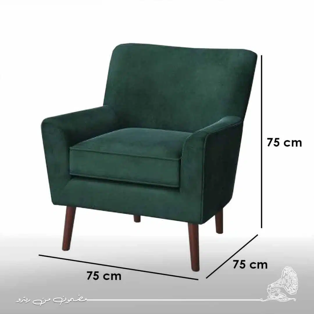 كرسي ذراعين 75 سم عصري ومريح مصمم ليجمع بين الأناقة والراحة في قطعة واحدة عملية وفاخرة. هذا الكرسي المريح مثالي لأي مساحة في منزلك، سواء غرفة المعيشة، غرفة النوم، المكتب، أو حتى في الصالات والكافيهات، ليمنحك تجربة جلوس مميزة ومريحة طوال اليوم مصنوع الكرسي من خشب طبيعي متين ويحتوي على مسند ظهر مريح مع مقعد وجانبين مُبطنين بالفوم، ما يوفر دعماً ممتازاً للجسم أثناء الجلوس. القماش القطيفة الفاخر يغطي الكرسي بالكامل، ليضيف ملمسًا ناعمًا وأنيقًا ينسجم مع مختلف أنماط الديكور لون الكرسي الأخضر العصري وتصميمه الأنيق يجعله مناسبًا للتنسيق مع أي ديكور داخل ليضيف لمسة من الحيوية والدفء لأي مكان يوضع فيه