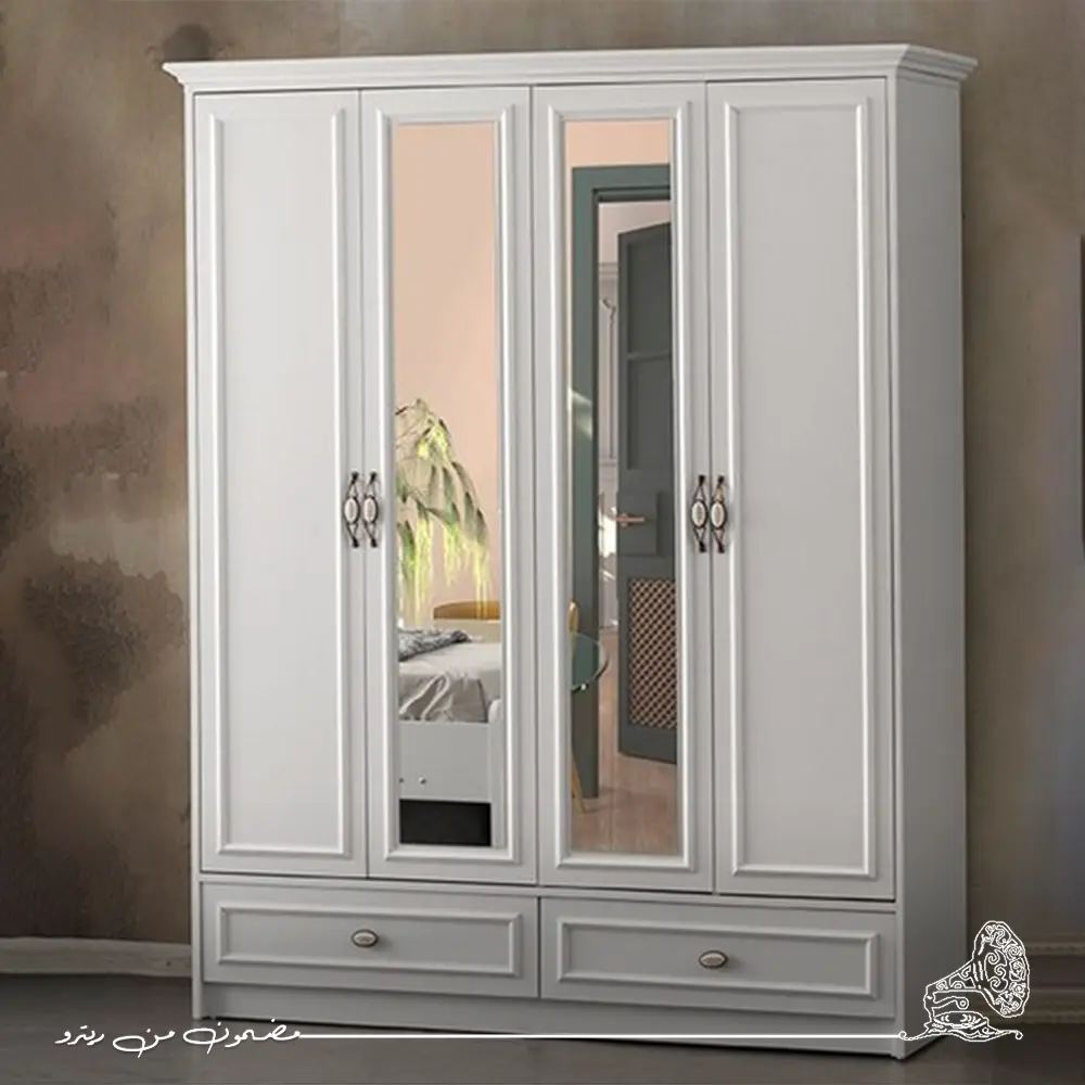دولاب مودرن 140سم رائع يجمع بين الأناقة والعملية في تصميم واحد ليكون إضافة مثالية لغرفتك، يتميز بتصميم عصري أنيق ومساحة تخزين واسعة جدًا تلبي جميع احتياجاتك اليومية، حيث يحتوي على مساحتين للتخزين ودرجين سفليين لتوفير مساحة مثالية لحفظ الملابس والأغراض الشخصية بشكل مرتب ومنظم، مع مرايا مدمجة تضيف لمسة فاخرة وتساعدك على تنسيق إطلالتك قبل الخروج، ويحتوي الجانب الايمن على شماعة ورفّين لترتيب الملابس الطويلة والقصيرة بطريقة منظمة، بينما تحتوي الجانب الايسرعلى شماعة ورف إضافي لتخزين الملابس المطوية والإكسسوارات الصغيرة، كل هذا بتشطيب أنيق باللون الأبيض يمنح الغرفة إشراقة رائعة ويضفي لمسة عصرية تتناغم مع مختلف أنماط الأثاث ، ويصنع الدولاب من خشب ام دي اف عالي الجودة ليضمن لك المتانة وطول العمر والاستخدام اليومي بثقة وراحة.