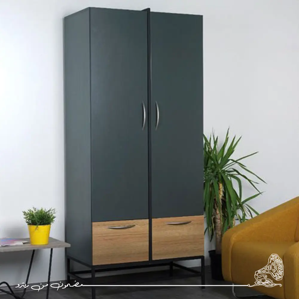 دولاب ملابس 90 سم مودرن مصنوع من خشب عالي الجودة، يجمع بين التصميم العصري والعملية في التخزين. يحتوي على درجين وضلفة:الضلفة مزودة بـ 5 أرفف وشماعة لتنظيم الملابس المختلفة بشكل مرتب وسهل الوصول إليها.الدرجين يتيحان تخزين الملابس الصغيرة أو الإكسسوارات بطريقة منظمة.تصميمه العصري باللون رمادي غامق مع لمسات خشبية يضفي أناقة على الغرفة، ويجعل استغلال المساحة أفضل مع ترتيب الملابس بشكل عملي ومرتب