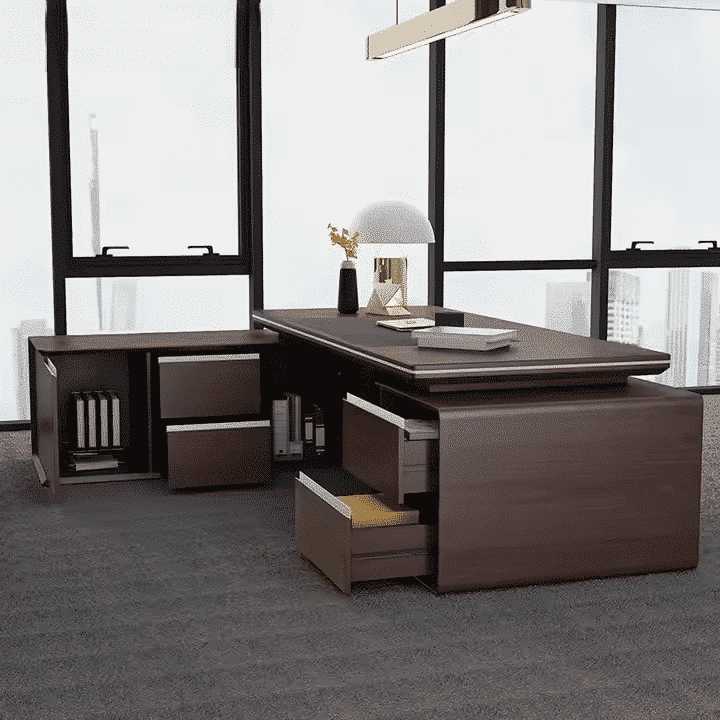 مكتب مودرن بلون بني دافئ، تصميمه يجمع بين الأناقة والعملية لتوفير مساحة عمل واسعة ومريحة. سطح متين وواسع يناسب مختلف المهام المكتبية، مع لمسة طبيعية تضفي دفء ورونقًا على بيئة العمل. خيار مثالي للمكاتب التي تبحث عن تصميم عصري يجمع بين الجمال والوظيفة بسهولة وأناقة