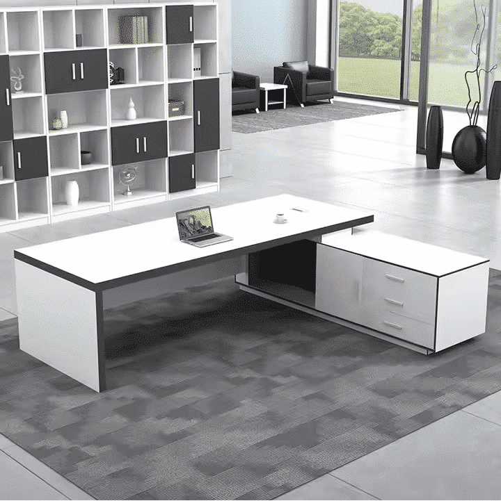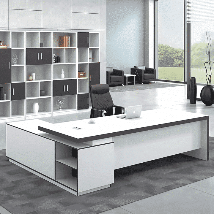 مكتب مودرن 200سم أنيق يجمع بين البساطة والفخامة ليمنحك بيئة عمل مريحة وراقية. مصنوع من خشب ام دي اف مع طبقة ميلامين مقاومة للخدش والرطوبة لضمان المتانة وسهولة التنظيف. يتميز المكتب بلونه الأبيض العصري الذي يضيف لمسة من الاتساع والإشراق لأي مساحة، مما يجعله مثاليًا للمكاتب الإدارية أو المنزلية الحديثة.يأتي المكتب بتصميم عملي مزود بوحدة جانبية تحتوي على أدراج وضلفة ورف تخزين لتساعدك على تنظيم ملفاتك وأغراضك اليومية بكل سهولة. كما يمكن اختيار اتجاه السايد حسب رغبتك لتناسب المساحة المتاحة لديك.بفضل تخانة القرصة 3.5 سم يتمتع المكتب بثبات وقوة تضيف لمسة فاخرة إلى تصميمه العصري، مما يجعله قطعة أساسية لكل من يبحث عن الجودة والأناقة في آن واحد.
