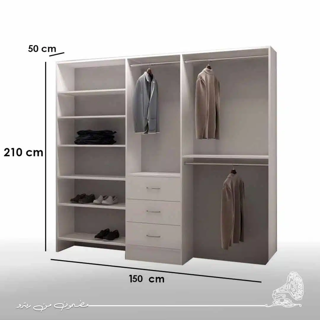 دريسنج مودرن 150 سم عملي يجمع بين الجمال الوظيفي والمساحة الواسعة للتخزين، مصمم خصيصًا لتلبية كافة احتياجاتك اليومية في ترتيب الملابس والإكسسوارات والأغراض الشخصية، يحتوي على 7 أرفف واسعة تسمح بتنظيم الملابس المطوية والأغراض الموسمية بشكل مرتب وسهل الوصول إليها، وثلاث شماعات قوية لتحافظ على ملابسك الطويلة والقصيرة دون تجاعيد، إلى جانب ثلاثة أدراج مريحة لتخزين المستلزمات الصغيرة مثل الأحزمة والمحافظ والإكسسوارات، مما يجعل كل شيء في مكانه ويوفر تجربة استخدام سلسة ومريحة، ويتميزبلون أبيض ناعم يضيف شعورًا بالانتعاش والهدوء داخل الغرفة ويكمل أي ديكور مودرن، وصُنع هذا الدريسنج من خشب ام دي اف عالي الجودة ليضمن متانة وصلابة تدوم لسنوات طويلة مع الاستخدام اليومي، مما يجعله قطعة أثاث أساسية تضفي لمسة فاخرة وعملية على أي غرفة نوم، ويجعل تنظيم الملابس تجربة سهلة وممتعة