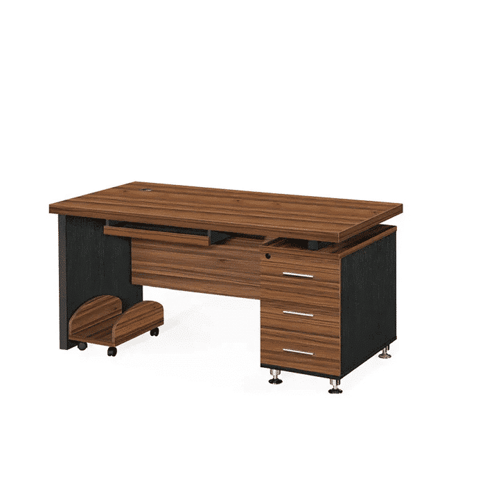 مكتب موظف 120 سم أنيق وعصري مصنوع من خشب ام دي اف عالي الجودة مستورد من الاتحاد الأوروبي، يجمع بين الصلابة والمتانة مع لمسة من الأناقة الحديثة التي تضفي طابعًا احترافيًا على أي مساحة عمل.يتميز المكتب بتصميمه العملي وسطحه الواسع الذي يوفر مساحة كافية لوضع الأجهزة المكتبية، الأوراق، والملفات، مما يجعله مثاليًا للاستخدام اليومي في بيئات العمل أو المنزل. كما يحتوي على أدراج مدمجة تتيح لك حفظ المستندات والأغراض الشخصية بشكل منظم وسهل الوصول إليها.اللون الخشبي × الأسود يمنحه مظهرًا راقيًا يتناسب مع مختلف أنواع الديكورات، ليجمع بين الأناقة والوظيفة في آنٍ واحد.