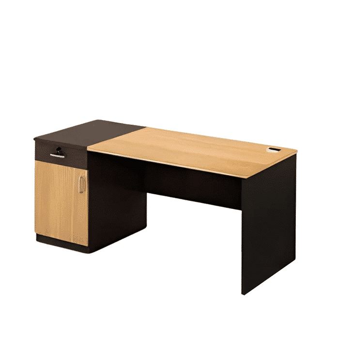 مكتب موظف مودرن بتصميم أنيق يجمع بين دفء الخشب وقوة اللون الأسود، ليمنح مساحة عمل عملية وعصرية. يوفر سطحًا واسعًا ومنظمًا يساعد على ترتيب الأدوات والملفات بكفاءة، مع خطوط تصميم نظيفة تضفي لمسة من الاحترافية والرقي على بيئة العمل. خيار مثالي للمكاتب التي تسعى لتوازن بين الوظيفة والجمال بأسلوب حديث