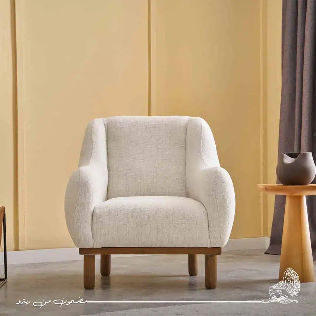 كرسي فوتيه بلون أوف وايت أنيق وتصميم واسع يوفر أقصى درجات الراحة، يجمع بين البساطة والرقي ليكون إضافة مثالية لأي مساحة. مناسب لغرف المعيشة أو الزوايا الهادئة، ويضفي لمسة من النعومة والدفء على الديكور الداخلي