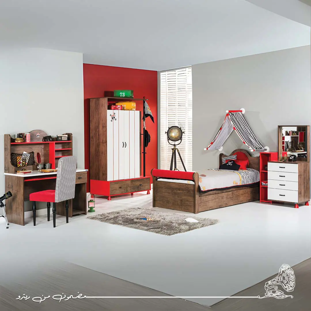 غرفة نوم أطفال كاملة بتصميم ذكي ومتكامل، مناسبة للمساحات المتوسطة وتجمع بين الوظيفة والذوق الرفيع مصنوعة من خشب MDF عالي الجودة ومغلفة بطبقة ميلامين مقاومة للخدوش الغرفة مكونة من سرير أنيق ومريح بحجم مناسب للأطفال، مع دولاب عصري بيوفر مساحة تخزين منظمة للملابس والأغراض الشخصية. وحدة الأدراج مزودة بمرآة تضيف لمسة ديكورية مع وحدة أرفف جانبية و مكتب عملي وانيق يكمل ديكور الغرفة بشكل لطيف و أنيق
