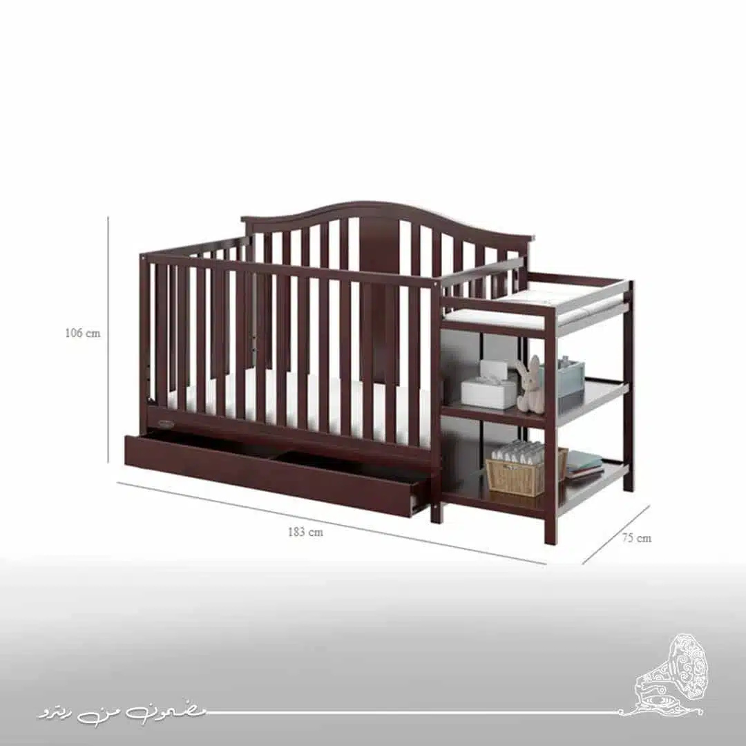 سرير أنيق بلون بني دافئ يضيف لمسة من الفخامة والدفء لغرفة الطفل. تصميم عملي ومريح يمنح الطفل نوماً هادئاً ومساحة كافية للحركة. مصنوع من مواد عالية الجودة لضمان المتانة والأمان