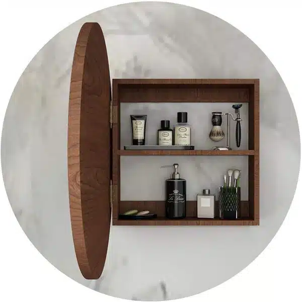 مرايا دائرية 60×60سم بتصميم مبتكر يجمع بين الأناقة والعملية في قطعة واحدة، حيث تأتي مزودة بوحدة تخزين داخلية ذكية تساعدك على تنظيم أغراضك الصغيرة بشكل مرتب وسهل الوصول إليها. شكلها الدائري العصري يضيف لمسة مميزة لأي مكان توضع فيه، لتكون أكثر من مجرد مرآة، بل قطعة ديكورعملية.يمكن تعليقها في غرفة النوم لتخزين الإكسسوارات ومستحضراتك اليومية، أو في مدخل المنزل للحفاظ على مظهرك قبل الخروج، وحتى في الحمام الرئيسي أو الخاص بالضيوف بفضل تصميمها العملي الذي يحمي الأغراض من البلل ويحافظ عليها منظمة.الإطار مصنوع من خشب ام دى اف عالي الجودة من مصنع الاتحاد الأوروبي باللون الخشبي الطبيعي، مما يجعلها سهلة الدمج مع مختلف أنماط الأثاث.