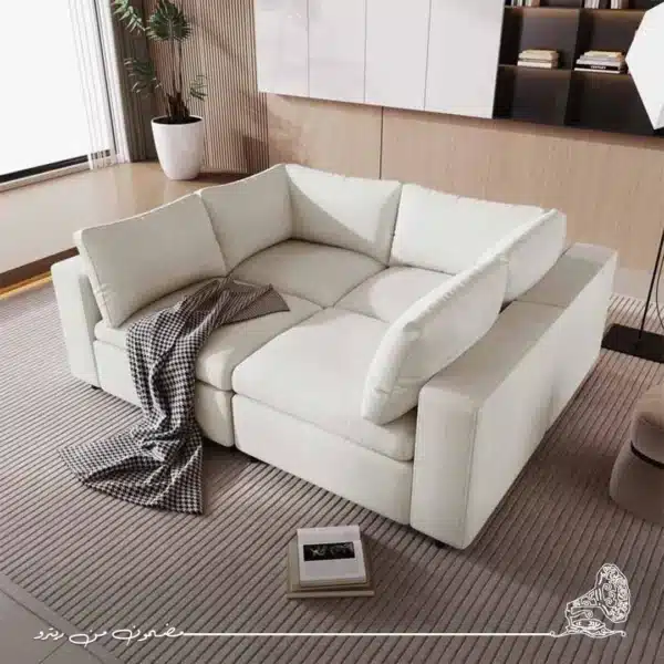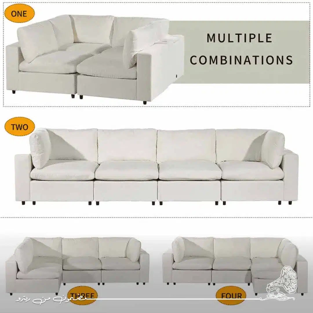 ركنة مودرن 315 سم بتصميم ذكي ومرن تتكون من كنبة وركنة في قطعة واحدة، مما يتيح لك ترتيب الجلوس بالطريقة التي تناسب احتياجاتك.تتميز الركنة بإمكانية مزج القطع الفردية الأربع لتشكيل كنبة كبيرة بأربعة مقاعد، زاوية واسعة، أو كنبة صغيرة بمقعدين، ما يوفر استخدامات متعددة وعملية للمساحات المختلفة.مصنوعة من خشب طبيعي متين وقماش كتان عالي الجودة، مع حشو أسفنج سوفت يوفر جلوسًا مريحًا وداعمًا.تتضمن الركنة وسادتين بنفس اللون لتعزيز الراحة وإضفاء لمسة من الأناقة والتناسق على التصميم.