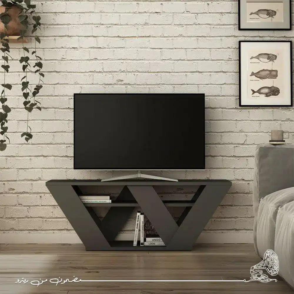 ترابيزة تلفزيون مودرن باللون الأسود بتصميم أنيق وعصري تضفي لمسة فخامة وقوة على الغرفة تتميز بسطح عملي مناسب لوضع التلفزيون مع وحدات تخزين منظمة لترتيب الأجهزة والإكسسواراتمصنوعة من خامات متينة توفر الثبات والاستقرار لتكمل ديكور المكان بأسلوب راقٍ وعصري