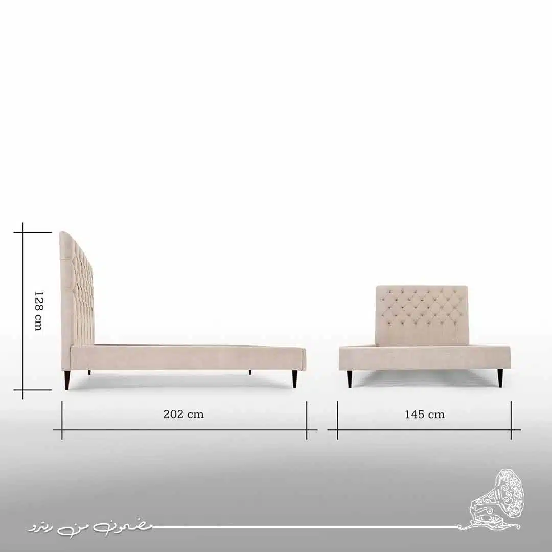سرير مودرن عملي صنع من الخشب الطبيعي بمقاس 145 سم بتصميم عملي يلائم المساحات المختلفة. يأتي السرير بظهر مرتفع مغطى بالكامل بقماش كتان فاخر بلون بيج هادئ، بظهر مرتفع مزين بتفاصيل كابوتونيه تضيف فخامة وأناقة للتصميم قائم علي ارجل خشبية أنيقة, يتميز السرير بالصلابة والمتانة، بينما يضفي التنجيد الراقي إحساسًا بالدفء والراحة، ما يجعله خيارًا مثاليًا لغرف النوم الرئيسية أو غرف الضيوف