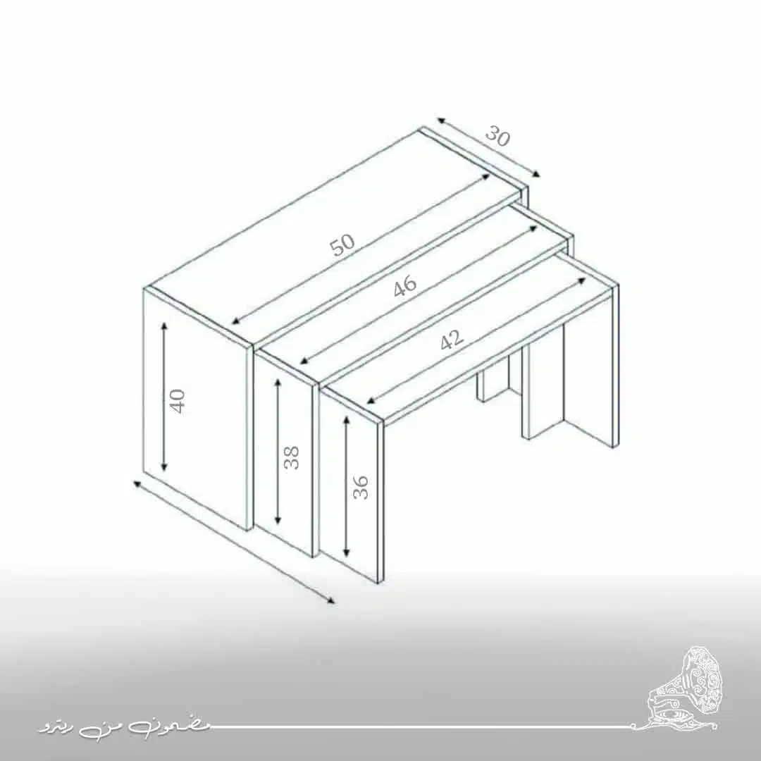 طقم مكون من ثلاث ترابيزات جانبية بأحجام مختلفة، مصمم ليجمع بين العملية والأناقة، مثالي للاستخدام في غرفة المعيشة أو غرفة النوم أو حتى المكتب. جميع الترابيزات مصنوعة من خشب ام دي اف عالي الجودة لضمان المتانة والصلابة.يمكن استخدام كل ترابيزة بشكل مستقل حسب الحاجة، حيث يأتي الطقم بترابيزة كبيرة، وترابيزة متوسطة، وترابيزة صغيرة لتوفير خيارات متعددة لتنظيم المساحات ووضع العناصر الزخرفية، الكتب، أو المشروبات. تصميمها العصري ولونها الأبيض مع لمسات خشبية يضيف لمسة راقية ومتناسقة مع أي ديكور داخلي، كما يجعل الطقم مناسبًا للغرف ذات المساحات المختلفة.