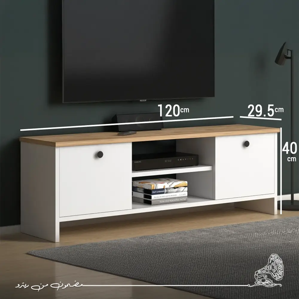 ترابيزة تلفزيون 120 سم بتصميم عصري يجمع بين العملية والأناقة، لتكون إضافة مثالية لغرفة المعيشة. تتميز بوجود رفّين مفتوحين يسهل استخدامهما لوضع الأجهزة الإلكترونية أو الاكسسوارات، بالإضافة إلى ضلفتين أنيقتين تساعدانك على حفظ وتنظيم أغراضك بشكل مرتب بعيداً عن الفوضى. اللون الأبيض × البيج يمنحها لمسة دافئة عصرية تضيف إشراقة إلى المكان وتتماشى بسهولة مع مختلف أنماط الديكور سواء الكلاسيكي أو الحديث. حجمها المتوسط يجعلها مناسبة لمختلف المساحات، فهي قطعة أنيقة وعمليّة في آن واحد.