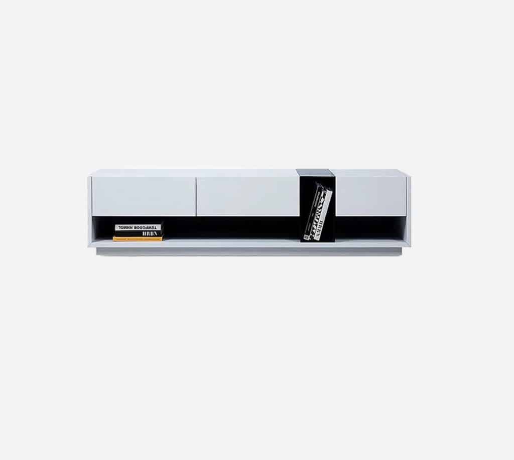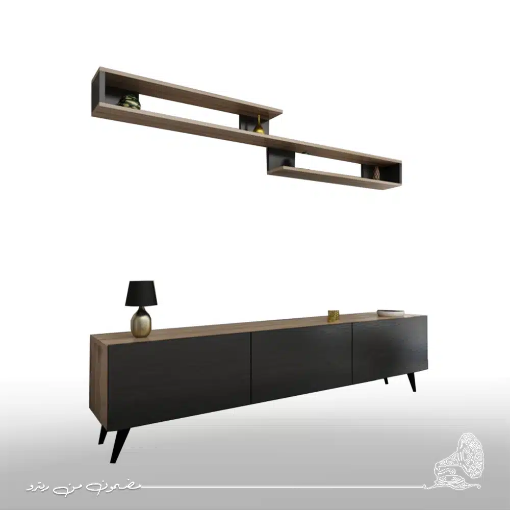 ترابيزة تلفزيون مودرن بتصميم أنيق يجمع بين اللون البيج الدافئ والأسود العصري، مما يخلق تباينًا جذابًا يضيف لمسة فريدة لغرفة المعيشة. مصنوعة من خامات عالية الجودة توفر متانة واستقرارًا لتحمل الأجهزة الإلكترونية. تصميم عملي يوفر مساحة واسعة لتنظيم التلفزيون والاكسسوارات بشكل مرتب وعملي