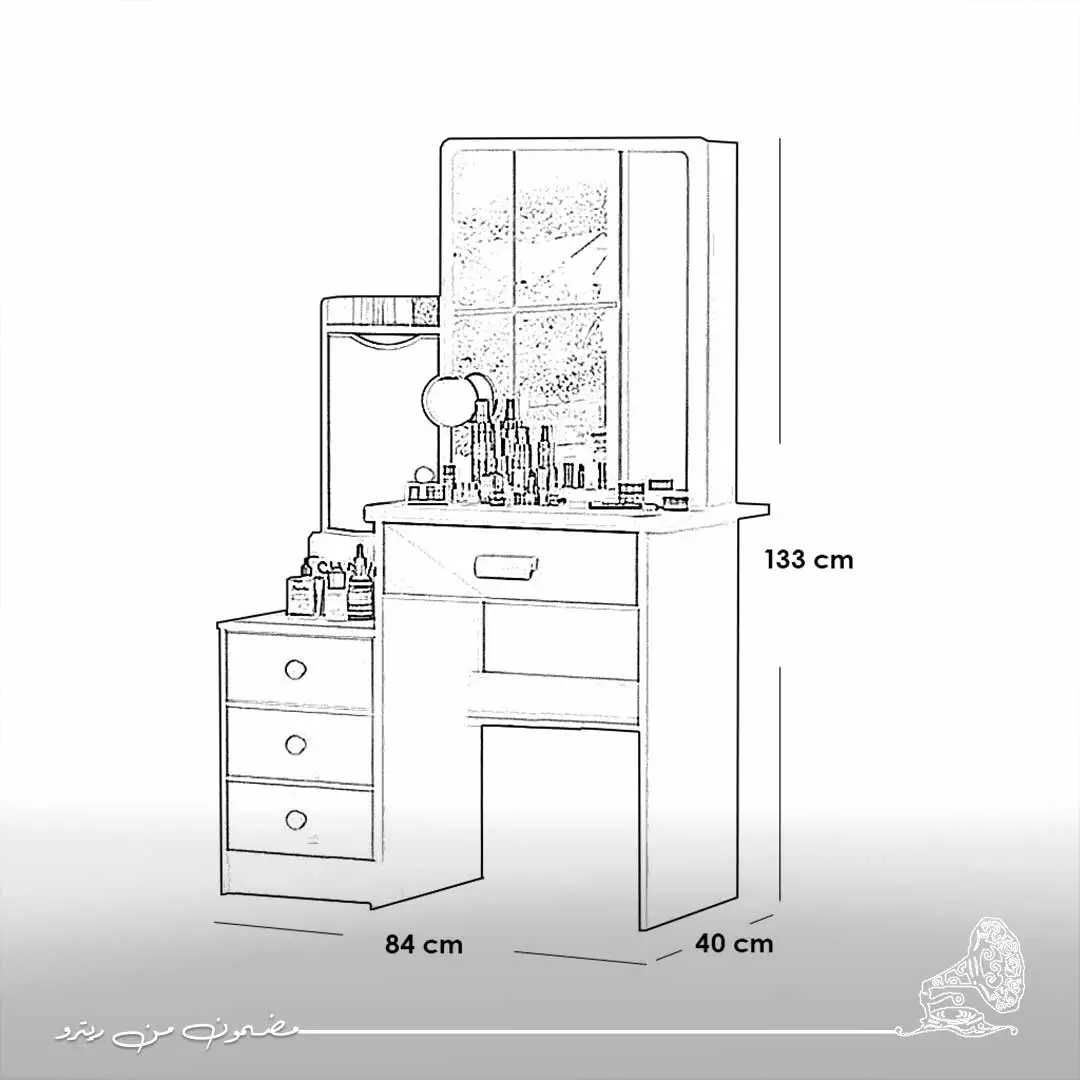 تسريحة مودرن 133 سم تصميمها بسيط وجذاب حيث ان تداخل اللون الرمادي مع الابيض يعطيها رونق و جمال خاص تحتوي التسريحة علي مرايا أنيقة و 4 ادراج بمساحة مناسبة وعملية لتخزين و ترتيب اغراضك بسهولة مع ضلفة جانبية أنيقة بها رف يوفر مساحة اضافية للتخزين خيار مثالي لكل من يبحث عن تسريحة عملية بلمسة جمالية راقية
