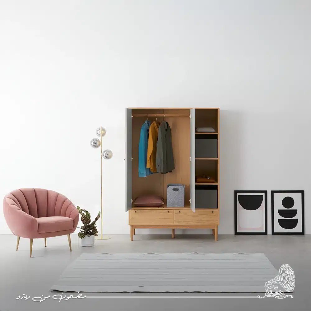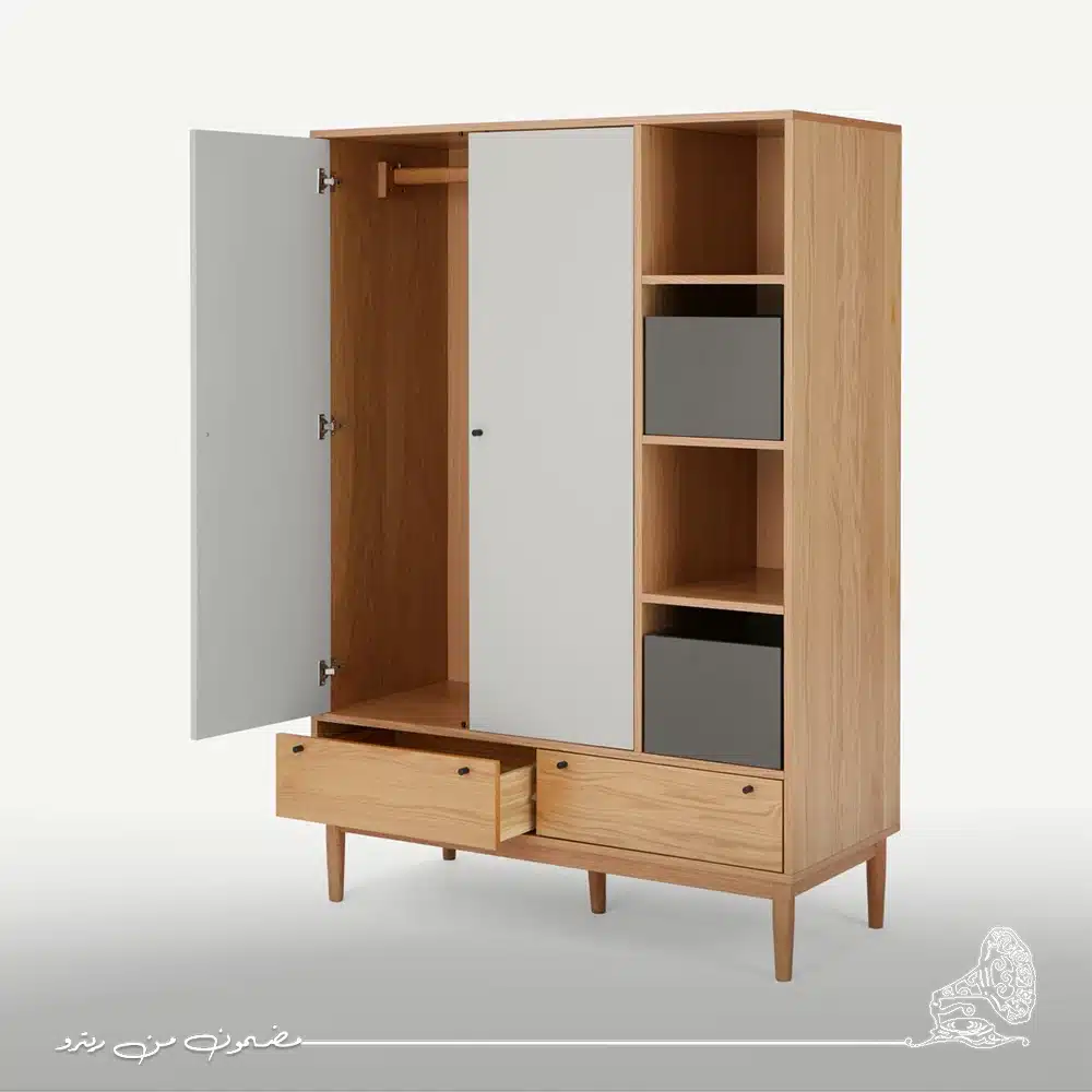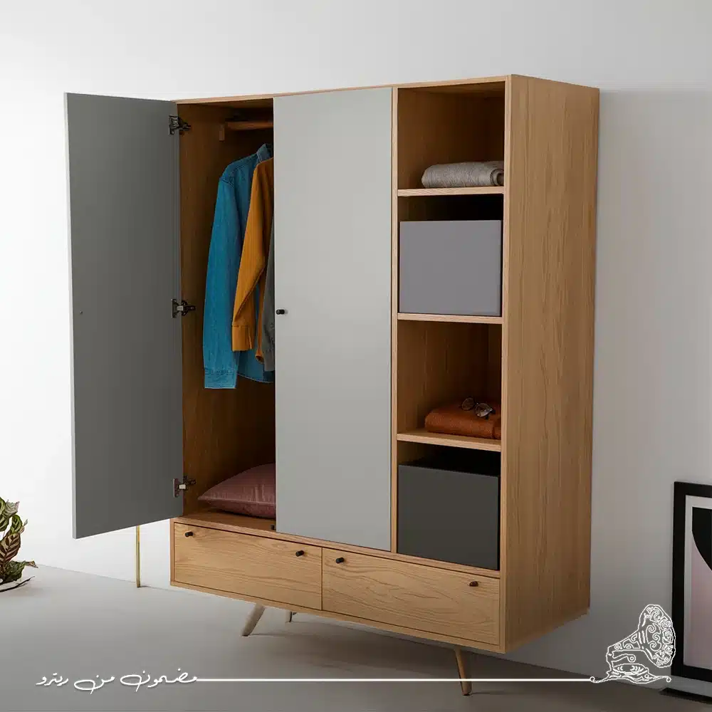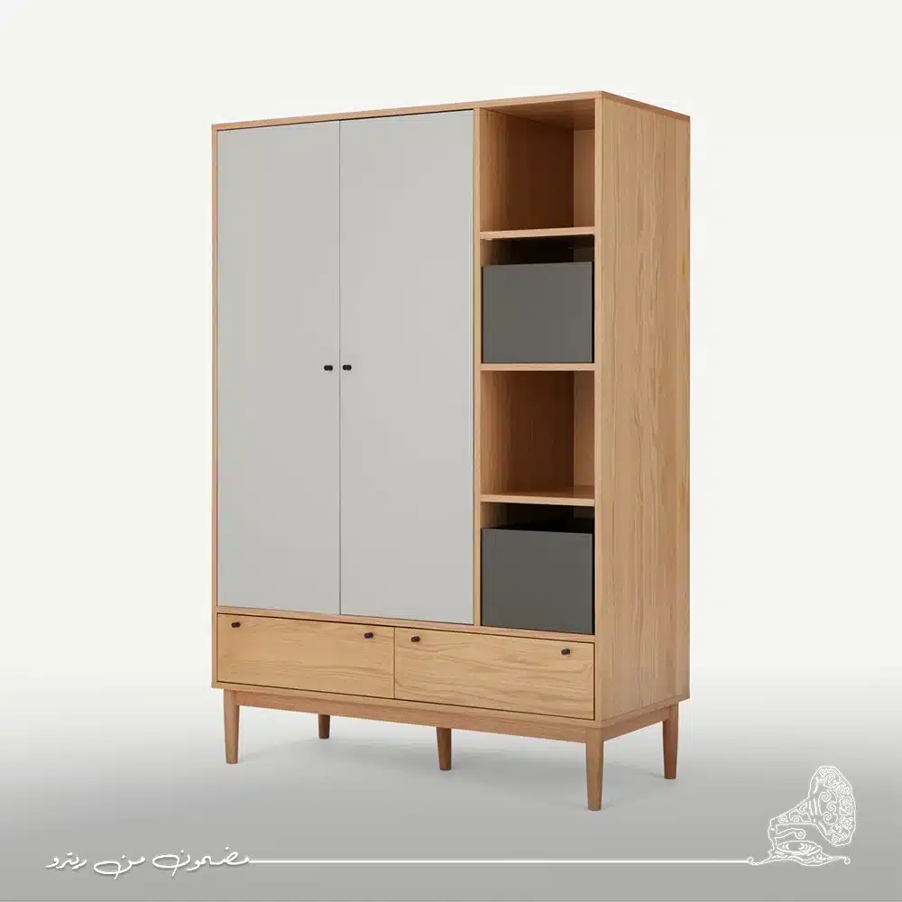 دولاب ملابس مودرن بألوان رمادي وبيج هادئة تنسجم مع أي ديكور عصري. تصميمه الأنيق يوفر مساحة منظمة لترتيب الملابس والأغراض بكل سهولة. قطعة تجمع بين البساطة والوظيفة لتضيف لمسة دافئة ومتزنة لغرفتك