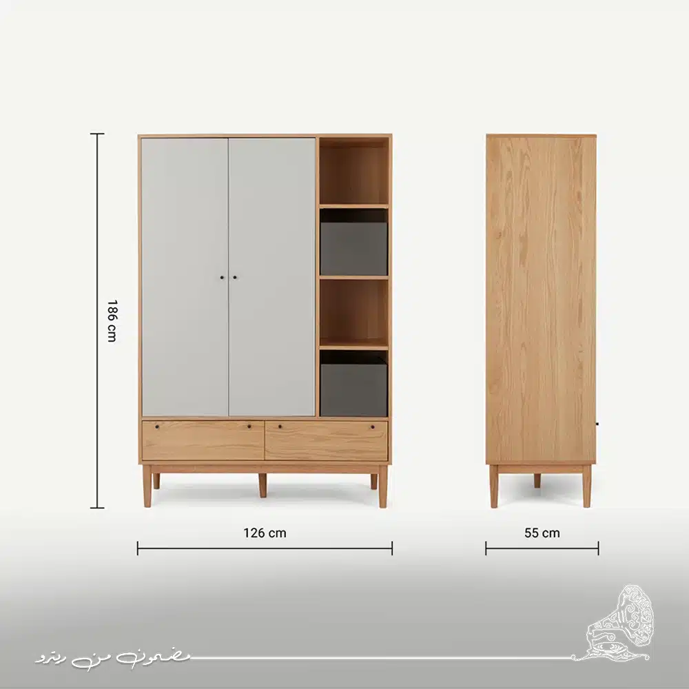 دولاب ملابس مودرن 126 سم عملي وأنيق، مصنوع من خشب عالي الجودة لضمان متانة طويلة الأمد. يضم الدولاب وحدة بها شماعة لتعليق الملابس و درجين لتخزين الأغراض الصغيرة والإكسسوارات بشكل منظم، بالإضافة إلى وحدة أرفف مفتوحة بثلاثة مستويات لتسهيل ترتيب الملابس والقطع المطوية بطريقة عملية ومرتبة دولاب عصري مميز مما يجعله مثالياً لتنظيم كل ما تحتاجه في مكان واحد. يأتي باللون الرمادي مع لمسات البيج العصري يضفي دفء وأناقة على غرفة النوم، ليصبح هذا الدولاب قطعة أساسية تجمع بين التصميم العصري والوظائف العملية