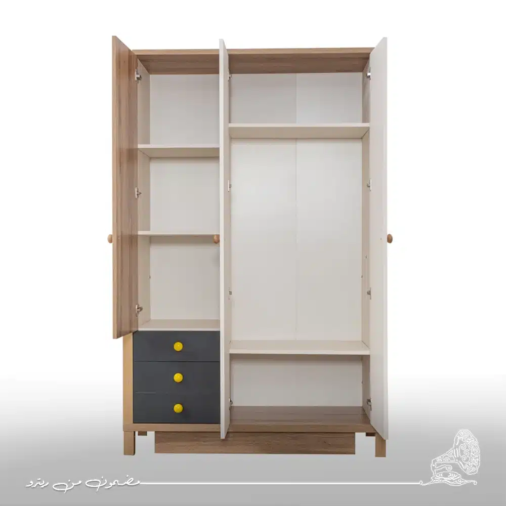 دولاب ملابس مودرن بتصميم متعدد الألوان يضفي حيوية وتميّز على أي مساحة. يجمع بين الوظيفة والستايل العصري بذكاء، مع تقسيمات داخلية تسهّل عليك ترتيب ملابسك وأغراضك. خيار جريء ومميز يضيف لمسة شخصية وأنيقة لغرفتك